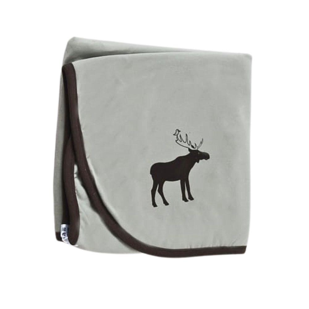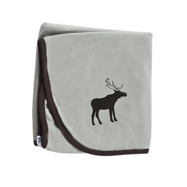 - Älgen Taggen och hans fågelkompis pryder snuttefilten.