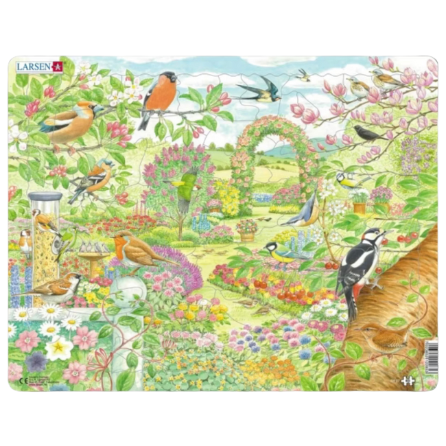 Ett roligt och utvecklande pussel med motiv av fåglar du kan träffa i trädgården.
