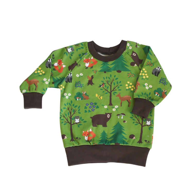 Tröja i collegemodell tillverkad av By Lelou i en mjuk, ekologisk bomullsinterlock med tryck designat av By Lelou.